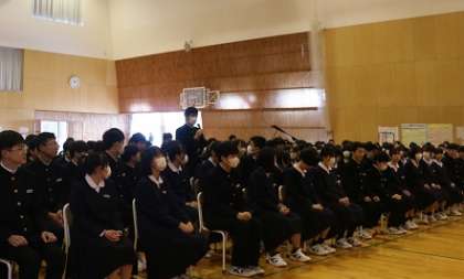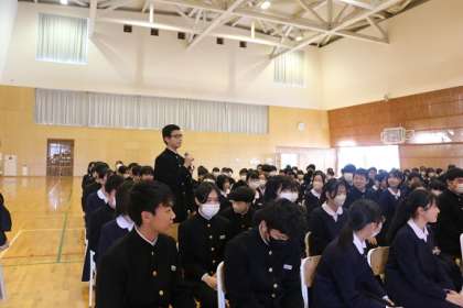 校長先生から、生徒や教職員が「幸せ」を感じられる学校をつくっていこうとお話がありました。そのために、