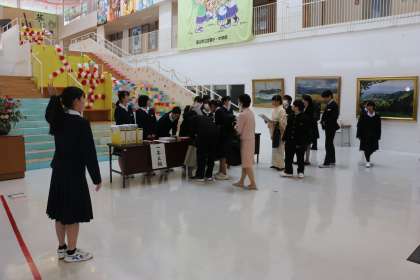 画像は、受付をしている3年生です。最上級生として、温かく新入生を迎えています。
