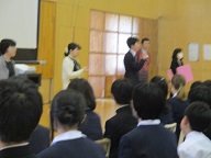 生徒たちは、目をつないで、しっかり話を聞いていました。