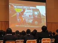 交通安全教室が行いました。生徒指導の先生のお話を聞いたり、事故を再現したDVDを見たりしました。