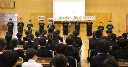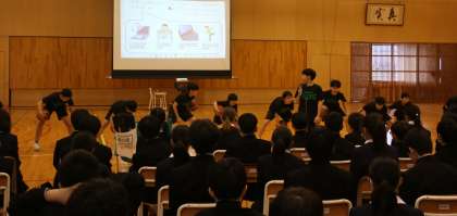 部活動紹介 その6 公開日 2024/04/10 更新日 2024/04/10 芝園の一日 4月10日(水) 昨日の部活動紹介の様子です。 画像は男子バスケットボール部です。部のモットーを伝えています!