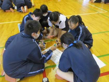 明日から教科の授業も始まるので、「学び愛の活動」として、班でクイズを考える活動を行いました。チームで協力して、知恵を出し合っていました。