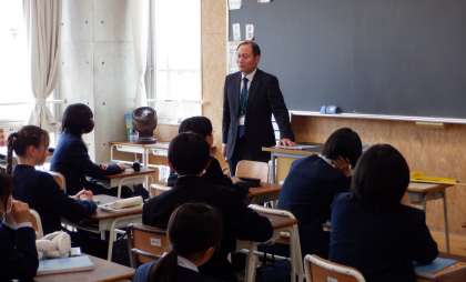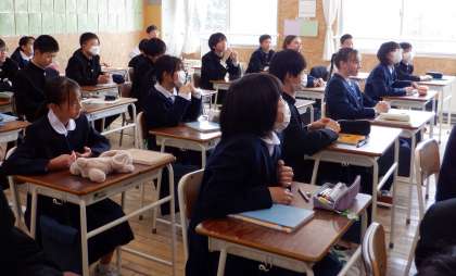 2−Cの数学の授業風景です。2年生の数学は、今年度から教科担当が変わりました。先生の自己紹介に、教室は笑いでいっぱい。どうぞよろしくお願いします。
