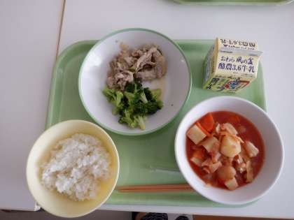 今日の給食 公開日 2024/04/16 更新日 2024/04/16 芝園の一日 4月16日(火) 今日の給食メニューは、 ・ごはん ・牛乳 ・ポークソテー ・白いんげん豆のトマト煮 ・ゆでブロッコリー です。 いんげん豆は柔らかく、トマトの酸味がきいて美味しかったです。