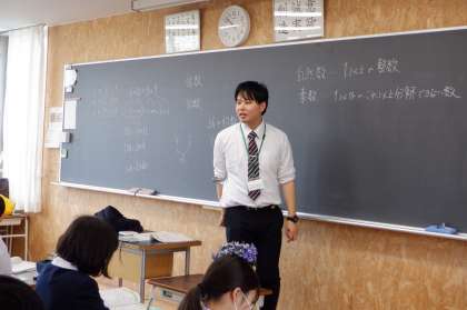 1−Aの数学の授業風景です。素数について学習をしています。中学の数学では、より専門的なことを学びます。授業をとおして、数学の楽しさに気づいてほしいです!