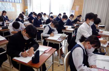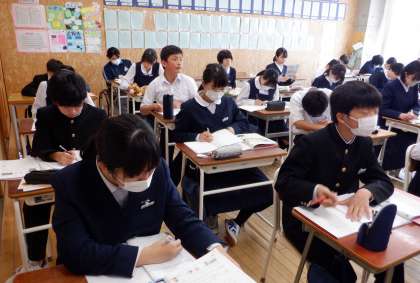 3−Cの英語の授業風景です。現在完了形の疑問文について学習しています。集中しています!