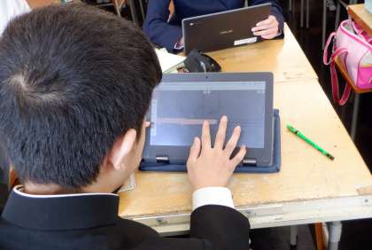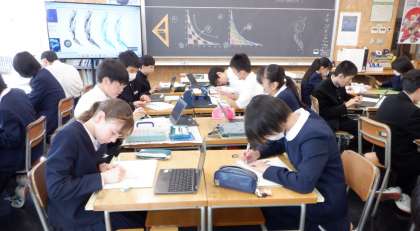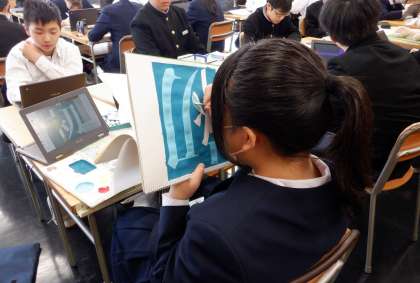 端末を活用して 2−A美術 公開日 2024/04/20 更新日 2024/04/20 芝園の一日 4月20日(土) 1限 2−Aの美術の授業風景です。制作を進めている「絵文字」も、そろそろ彩色の段階となりました。まずはタブレット上で彩色をして、仕上がりのバランスを見ています。端末を活用すると便利ですね!