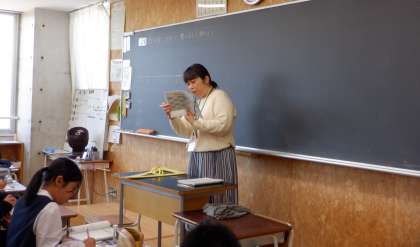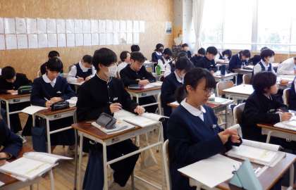 1−Cの数学の授業風景です。正負の数について、数直線を使って考えています。朝から集中している1年生、ステキです!