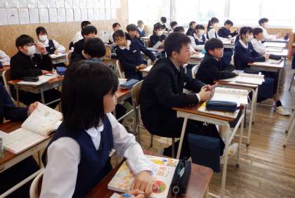1−Bの家庭科の授業風景です。食品群について学習しています。普段何気なく食べている食品ですが、栄養素について知ることで、豊かな食生活にしていきましょう。