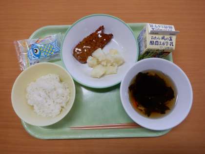 今日は一足早く「こどもの日献立」です。ハンバーグもジューシーで、かしわもちももっちりと、どれもとても美味しかったです。