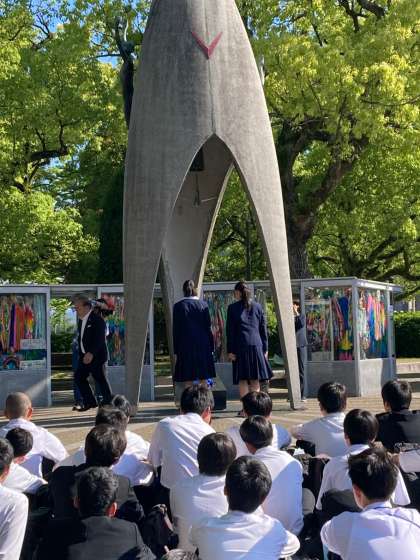 修学旅行2日目 3 公開日 2024/05/09 更新日 2024/05/09 芝園の一日 5月9日(木) 8:15 原爆投下の時刻に合わせて、平和セレモニーをしました。広島の空に、鐘の音が響いています。