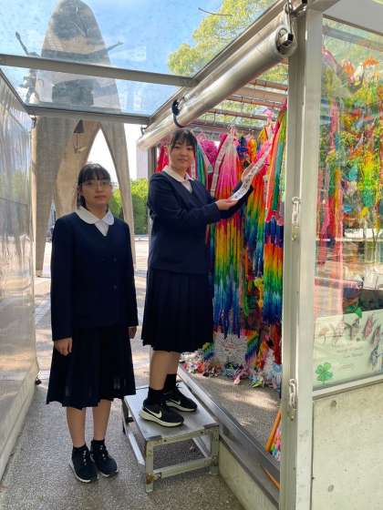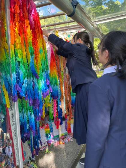 修学旅行2日目 5 公開日 2024/05/09 更新日 2024/05/09 芝園の一日 5月9日(木) セレモニーでは全員で「翼をください」を合唱しました。千羽鶴を奉納して、最後に平和宣言を全員で言いました。平和な世界を祈りながら。