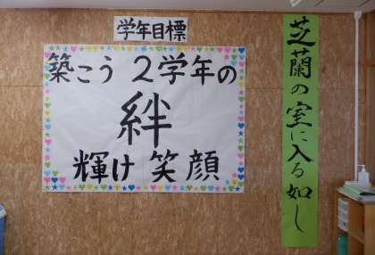 学年目標を掲示しました 2学年 公開日 2024/05/13 更新日 2024/05/13 芝園の一日 5月13日(月) 2学年のフロアに学年目標を掲示しました。2年生全員で、よりよい学年をつくっていきましょう。