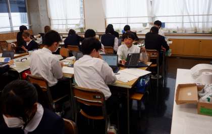 絵文字の制作 2−C美術 公開日 2024/05/13 更新日 2024/05/13 芝園の一日 5月13日(月) 1限 2−Cの美術の授業風景です。端末を活用して、彩色したイメージを見ながら、実際に色を付けています。いい感じ!