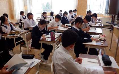 少人数のよさを生かして 3−A数学 公開日 2024/05/14 更新日 2024/05/14 芝園の一日 5月14日(火) 3−Aの数学の授業風景です。少人数のよさを生かして、生徒と教師が対話をしながら授業を進めています。