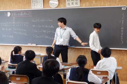 正負の数の計算 1−A数学 公開日 2024/05/15 更新日 2024/05/15 芝園の一日 5月15日(水) 1限 1−Aの数学の授業風景です。正負の数の計算をしています。生徒が実際移動して、正負の数のイメージを実感しています。