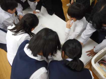 来週行われる確認テストの範囲が発表され、テスト勉強の計画を立てました。過去の先輩の計画表を参考にしながら、いつまでに、どのような学習をするかなど、詳しい計画を書き込んでいました。