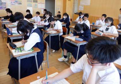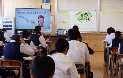 1−Bの音楽の授業風景です。鑑賞の授業をしています。