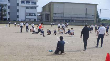 5月23日(木) 6限 3−Bの体育の授業風景です。実際にリレーをしました。体育大会のような盛り上がりです!
