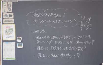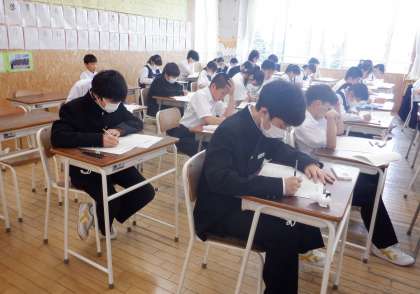 確認テスト2日目 1学年 公開日 2024/05/24 更新日 2024/05/24 芝園の一日 5月24日(金) 1限 確認テストの2日目です。画像は1年生。初めての考査にも、集中して取り組んでいます。いい感じ、1年生!