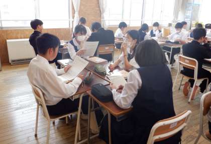 夕飯の献立を考える 1−A家庭科 公開日 2024/05/24 更新日 2024/05/24 芝園の一日 5月24日(金) 3限 1−Aの家庭科の授業風景です。夕飯の献立について、栄養バランスがよいかなど意見を交流し合っています。