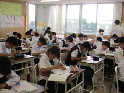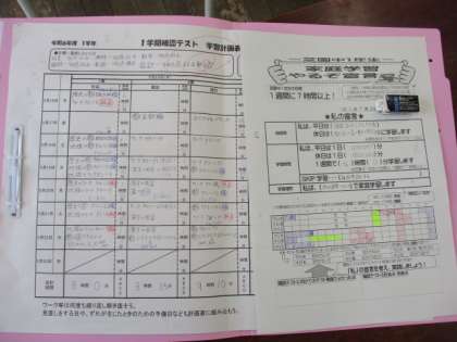 今日は、先週あった確認テストを振り返り、1週間に7時間以上の家庭学習を行う目標を達成するために、生活設計をしたり、「家庭学習やるぞ宣言」を考えたりしました。