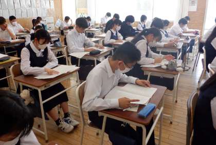 5月27日(月) 3限 3−Bの英語の授業風景です。確認テストの見直しをしています。