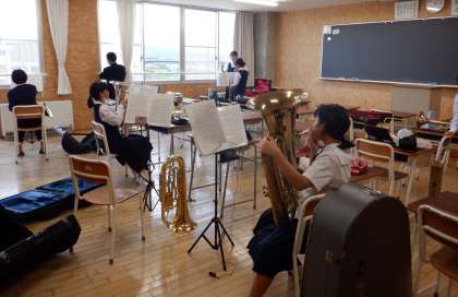 5月27日(月) 吹奏楽部です。基礎練習を大事にしています、ステキですね。