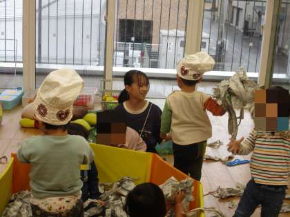 園児たちと一緒に遊んでいました。笑顔で接していました。