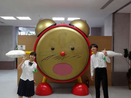 「社会に学ぶ『14歳の挑戦』」富山テレビでの様子 その2 公開日 2024/05/30 更新日 2024/05/30 芝園の一日 5月29日(水) CMナレーション体験では、現在放送されている「ジュートピア富山」へ声をあてました。実際に体験して、プロのすごさに触れていました。 3枚目の写真は、1階に展示されている「めざましくん」の前での記念撮影の様子です。