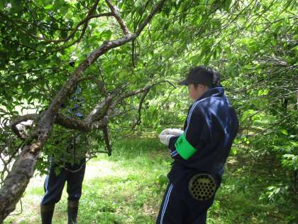 5月29日(水) 梅の実を採集していました。新緑がまぶしいですね。