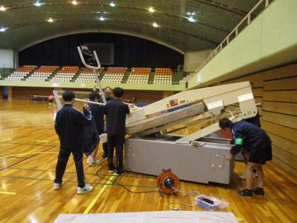 5月29日(水) バスケットボールのゴールを、片付けていました。