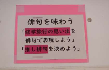 3学年のフロアには、国語の時間に作った俳句を掲示してあります。これは、修学旅行で感じたことを五・七・五の言葉に込めています。