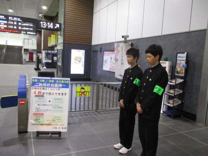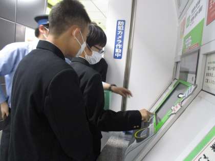 「社会に学ぶ『14歳の挑戦』」富山駅での様子 公開日 2024/05/30 更新日 2024/05/30 芝園の一日 5月30日(木) 改札口での案内をしている班と、券売機の取り扱いについて勉強している班に分かれて活動していました。