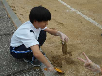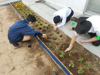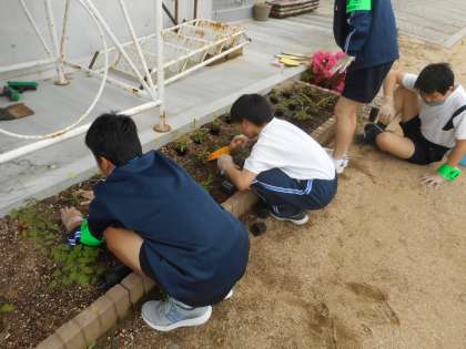 花壇の苗植えや草むしりを行いました。