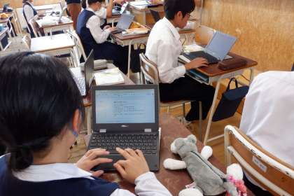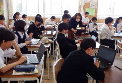 2−Aの国語の授業風景です。清少納言について追究学習をしています。鋭い観察眼に、改めて驚きますね。