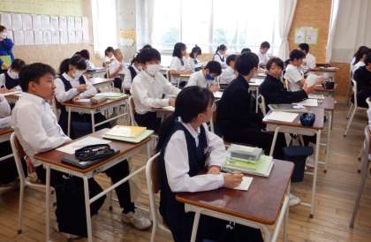 1−Bの理科の授業風景です。今日も教育実習生の先生が、頑張っています。中学校で初めて使うガスバーナー。正しい使い方をマスターして、多くの実験をしたいですね。