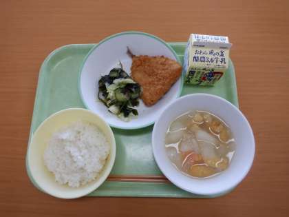 今日の給食 公開日 2024/06/10 更新日 2024/06/10 芝園の一日 6月10日(月) 今日の給食メニューは、 ・ごはん ・牛乳 ・あじフライ ・冬瓜のみそ汁 ・海藻サラダ です。 とても大きなあじフライ。サックサクで美味しかったです。