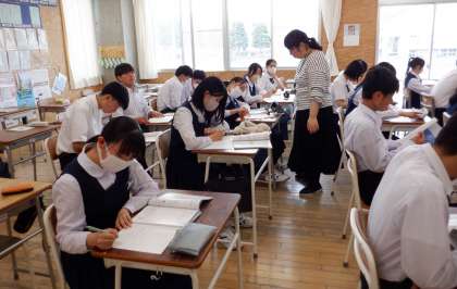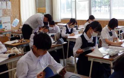 3−Bの数学の授業風景です。根号の計算を、それぞれが自分のペースでチャレンジしています。