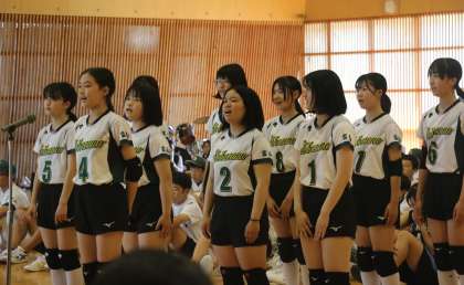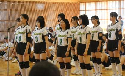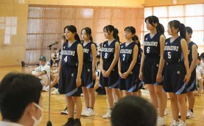 女子バスケットボール部とバレーボール部です。女子バスケットボール部は、どんな逆境も笑顔と元気をモットーに、またバレーボール部は固い絆で乗り越えてくれることでしょう。頑張れ!