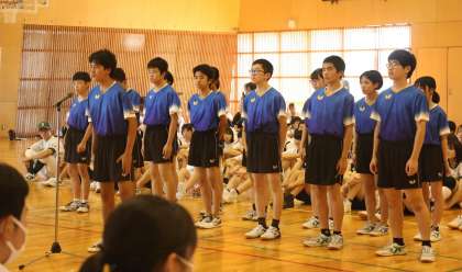 剣道部、卓球部、水泳部です。この後、クラブで出場する選手の紹介がありました。頑張ろう、芝中生!