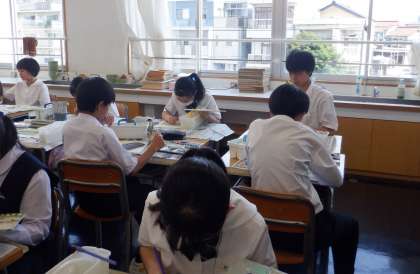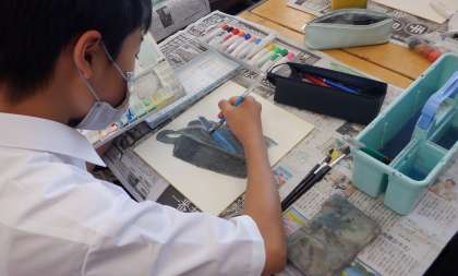 6月13日(木) 1限 1−Aの美術の授業風景です。彩色も順調に進んでいます。