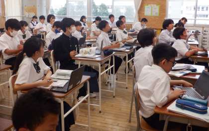 6月18日(火) 2限 1−Bの技術の授業風景です。期末考査に向けて学習の確認をしています。