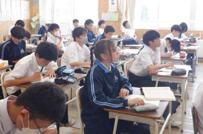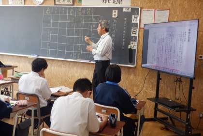 2−Cの国語の授業風景です。動詞の活用について学習しています。