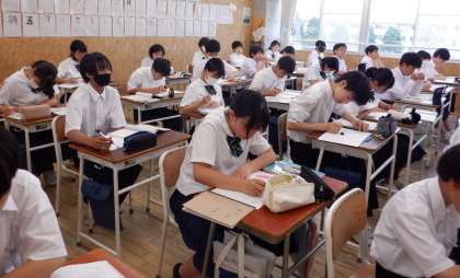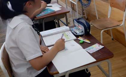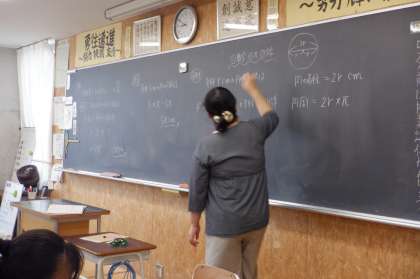 1−Cの数学の授業風景です。文字を使った式の確認をしています。大事なことを付箋で書くなど、分かりやすいノート作りをしています!