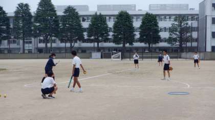3−Aの体育の授業風景です。チームと先生の大声援にファインプレーも続出です。
