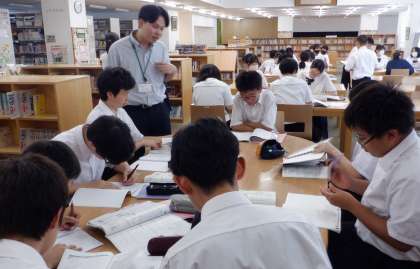 生徒会執行部主催の「拡大SKIP」も今日が最終日。担当はC組です。1〜3年生、入り交じって学習しています。