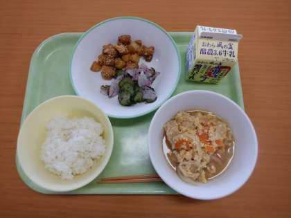 今日から7月です。梅雨のじめじめした暑さで夏バテしそうですが、給食を美味しくいただき乗り越えましょう。