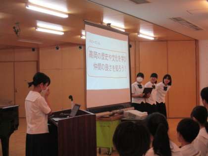 今日の学年集会では、夏休みの課題になっている「働く人インタビュー」についての話や高岡校外学習についての話をしました。