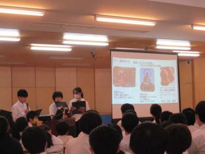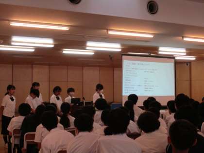 実行委員のメンバーが、スローガン・ルール・見所等を分かりやすく説明してくれました。これから班別学習のコースを決めていきますが、楽しみです。